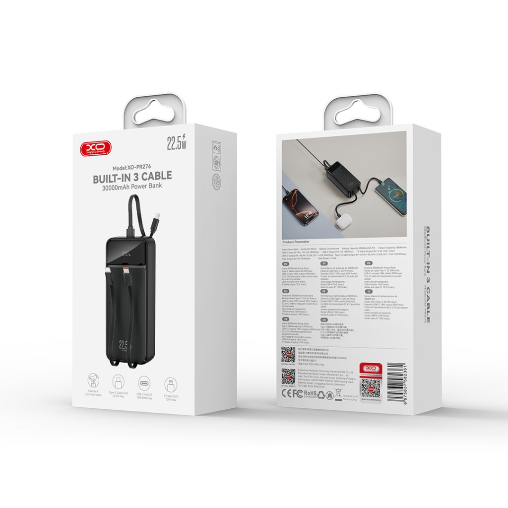 XO XO-PR276 Built-in 3 Cable Power Bank 30000mAh 22.5W