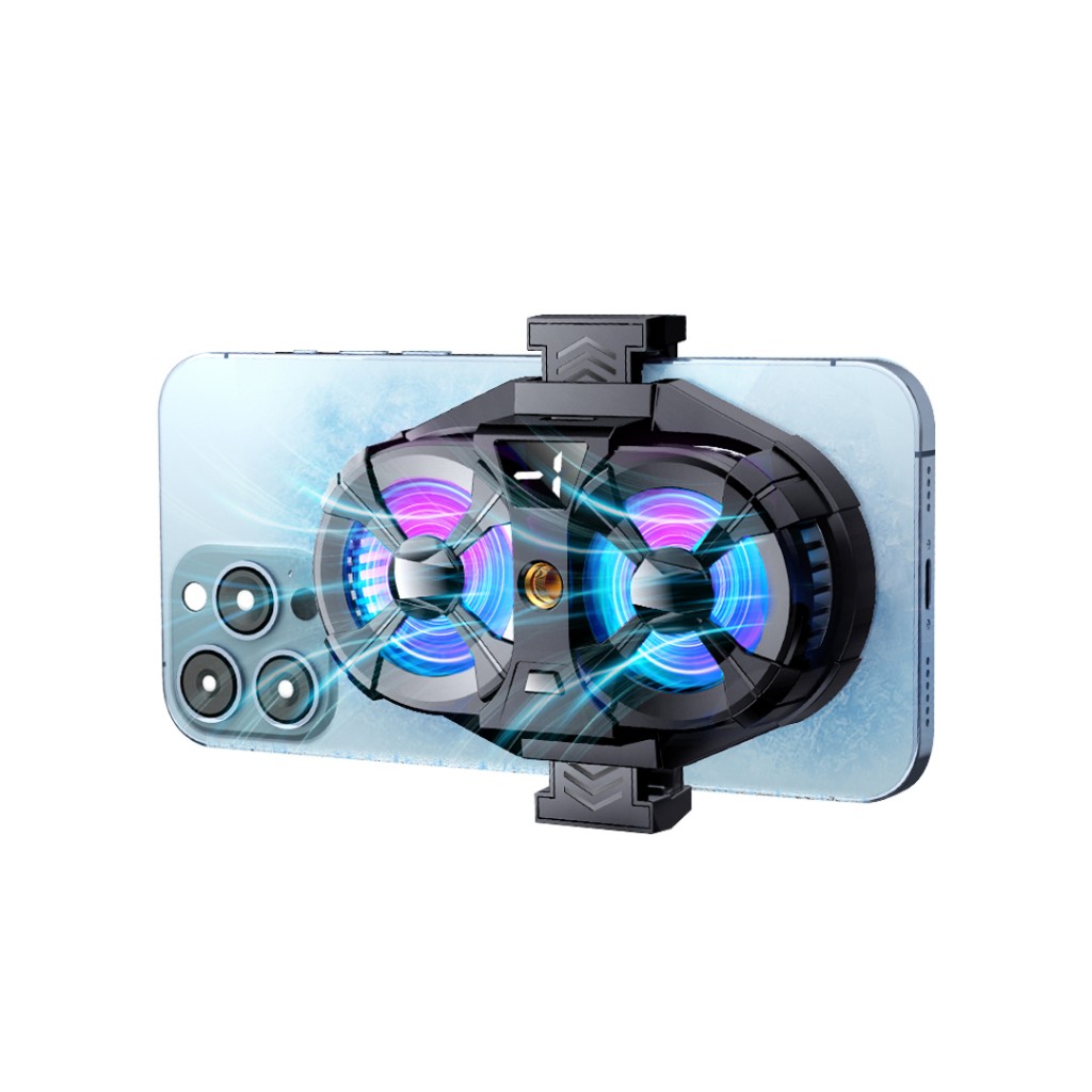 این خنک کننده با کیفیت و قدرتمند مجهز به دو عدد فن با سرعت چرحش فوق العاده 4500 دور در دقیقه است که میتواند در طی چند ثانیه دمای گوشی موبایل شما را پایین بیاورد. عملکرد این فن قدرتمند در طولانی مدت فوق العاده بوده و محافظ ایده آل سلامت سخت افزار موبایلتان به شمار میرود. این فن خنک کننده میتواند با استفاده از دو عدد فن قدرتمندی که دارد دمای موبایل شما را در حین بازی کنترل کرده و در صورت داغ شدن پایین بیاورد. این خنک کننده از متریال با کیفیت و با دوامی ساخته شده است. این فن رادیاتوری خنک کننده در بخش هایی که با موبایل تماس مستقیم دارد، متریال نرم یا سیلیکونی دارد که به بدنه موبایل هیچ گونه خط و خشی وارد نکند.