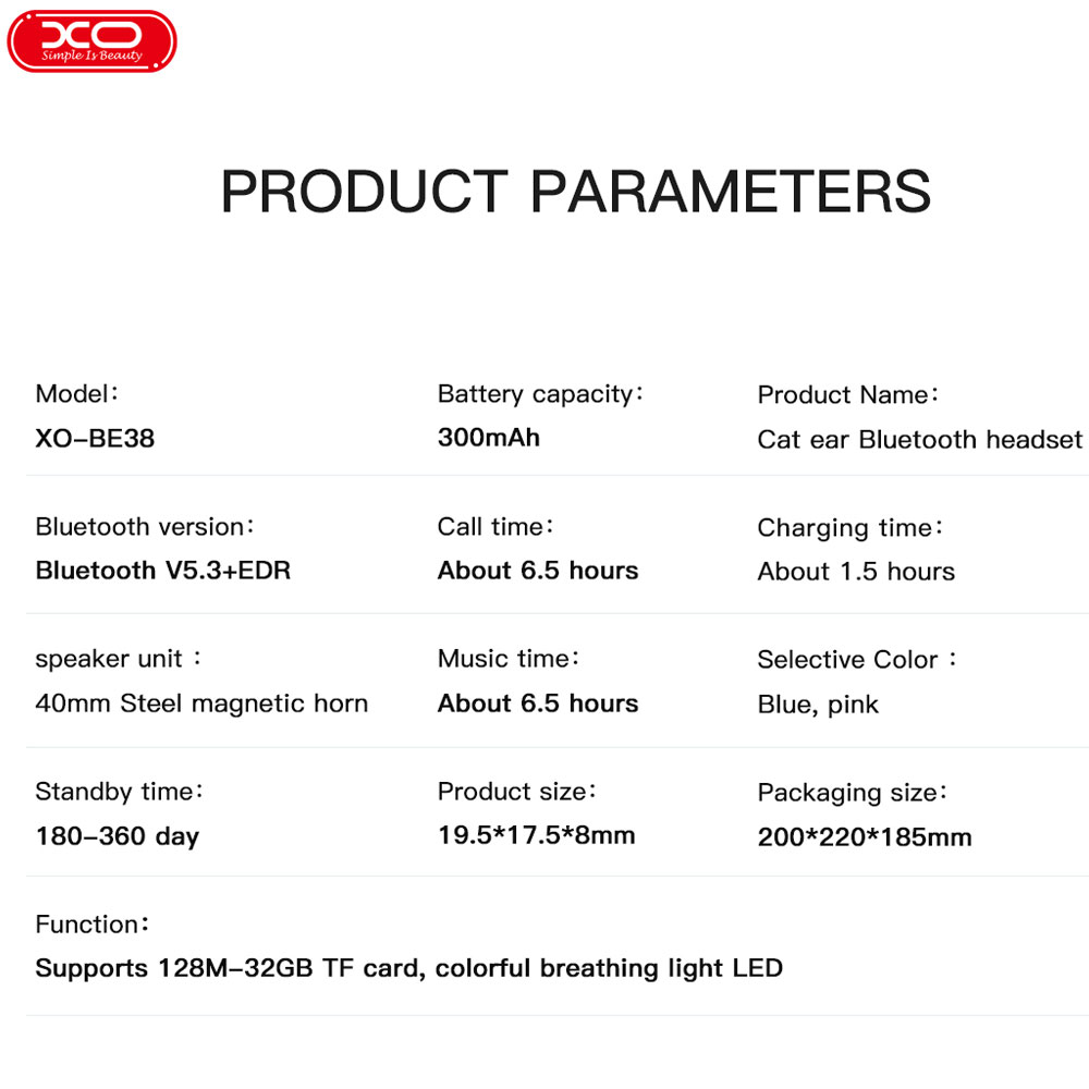 XO XO-BE38 Cat Ear Bluetooth Headphone