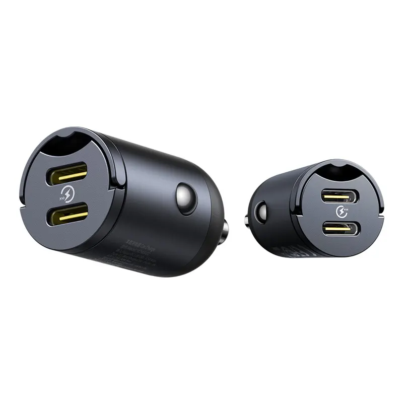 شارژر فندکی دو پورت 30 وات بیسوس Tiny Star VCHXX-CC