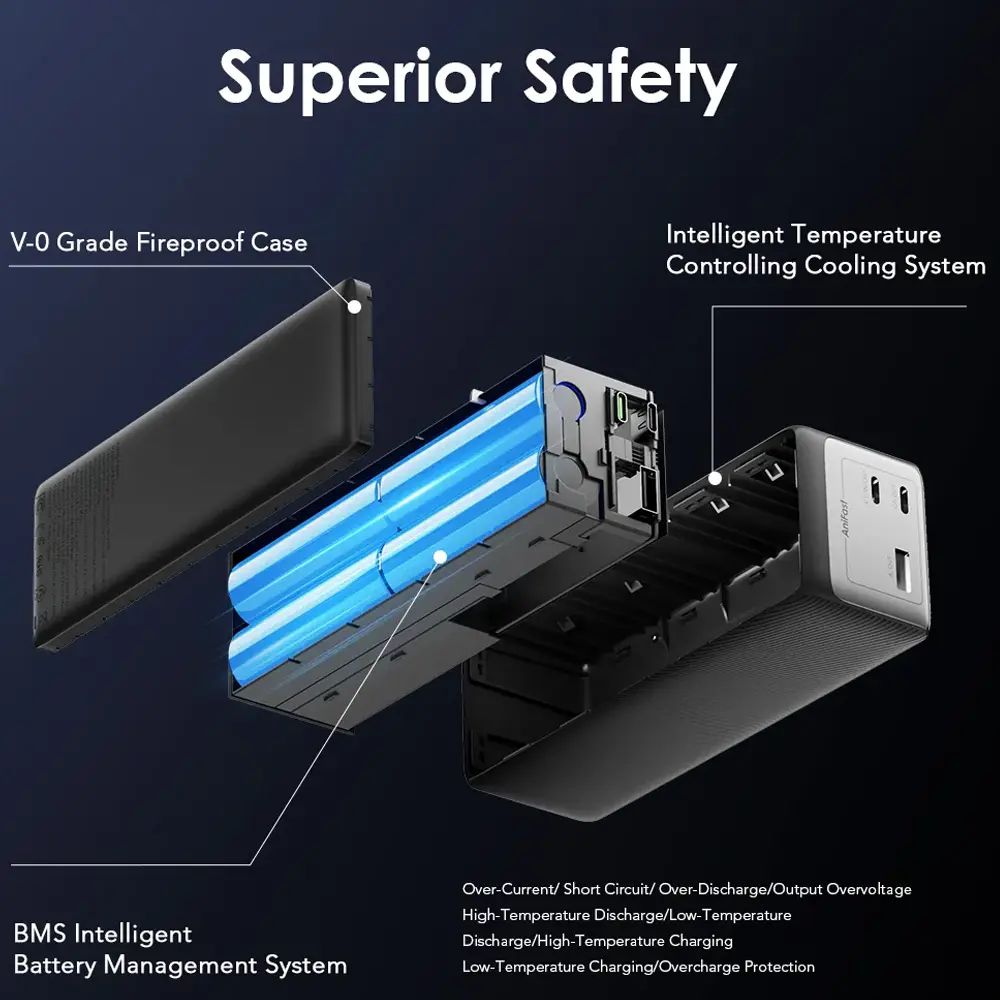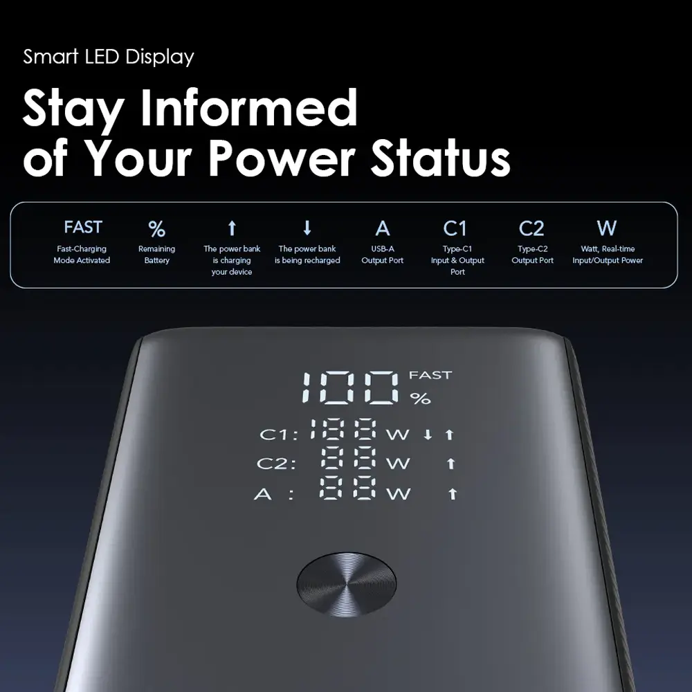 قابلیتهای ویژه: نمایشگر LED هوشمند، حالت شارژ کمجریان (Low Current Mode)، سیستم محافظت چندگانه و سازگاری با پرواز (Flight-Friendly).