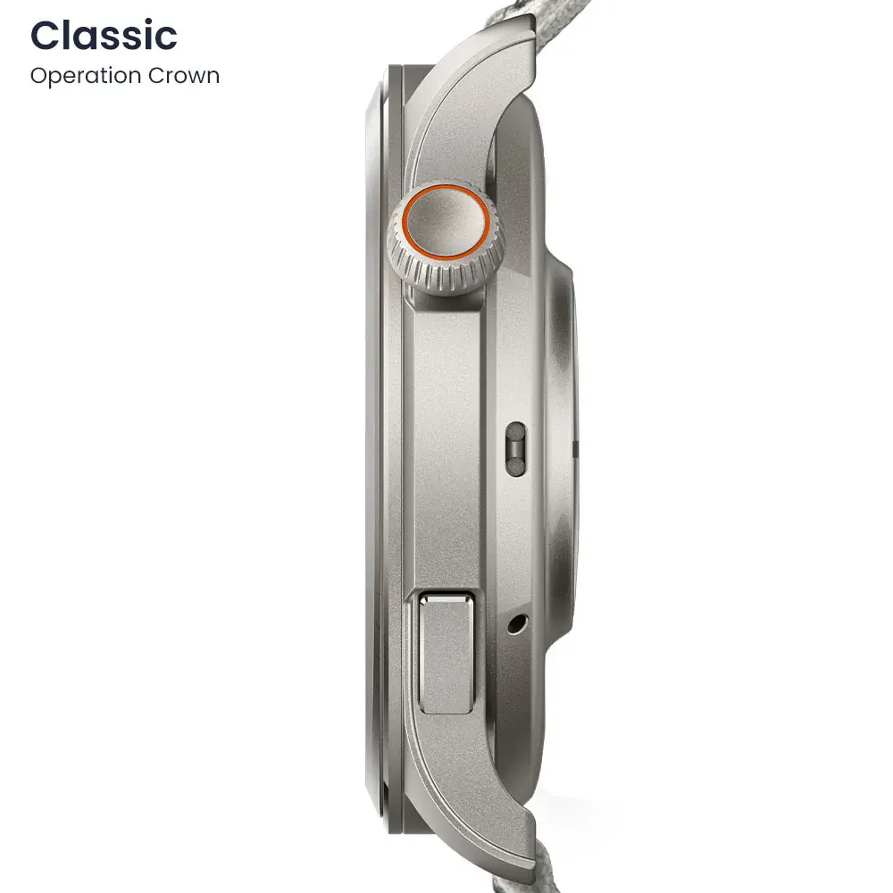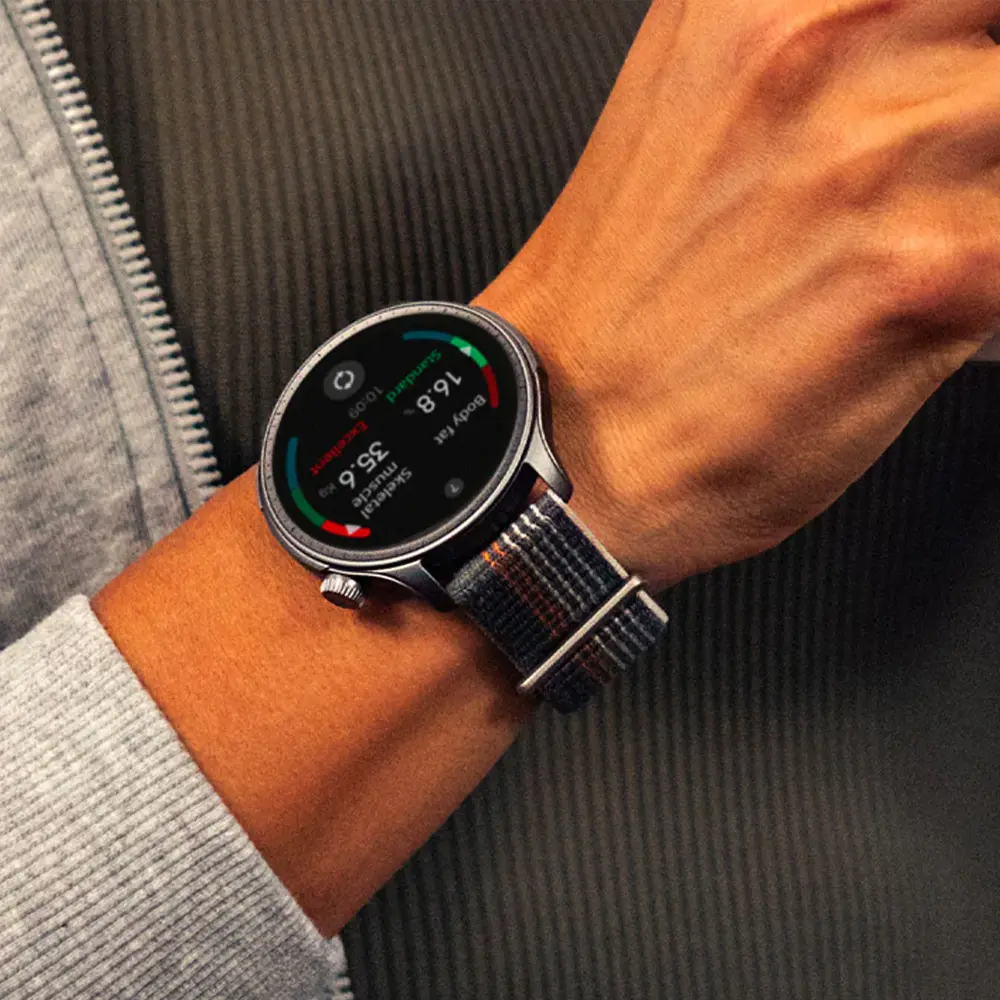 تجربه بصری با نمایشگر ۱.۵ اینچی AMOLED دایرهای شکل، کاملاً لذتبخش است. این صفحه نمایش با وضوح ۴۸۰×۴۸۰ پیکسل و فناوری ضد تابش خیرهکننده، تصویری شفاف و رنگارنگ را حتی زیر نور شدید آفتاب ارائه میدهد. فریم ساعت از آلیاژ آلومینیوم سبک ساخته شده که نه تنها وزن کلی را به ۳۵ گرم کاهش داده، بلکه مقاومت بالایی در برابر سایش ایجاد میکند و با ظاهری کلاسیک و ظریف، برای استفاده رسمی و ورزشی مناسب است.