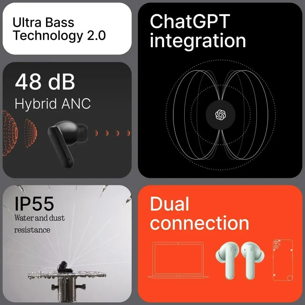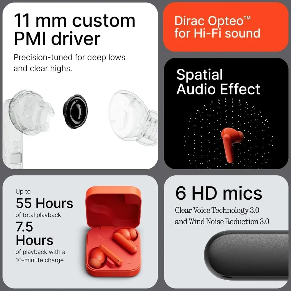 میکروفون: مجموعاً ۶ میکروفون (۳ عدد در هر گوشی) با فناوریهای ANC و ENC.