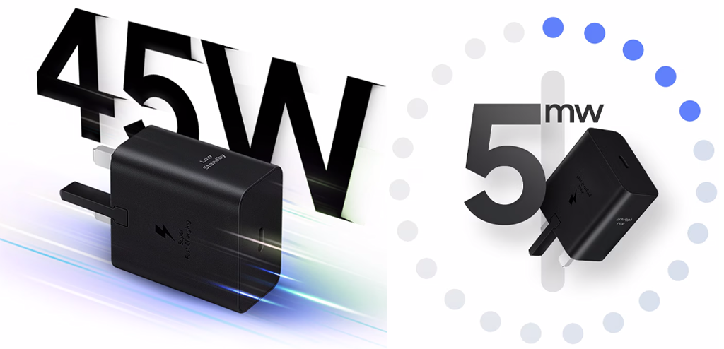 شارژر دیواری 45 وات سامسونگ مدل EP-T4511 Low Standby به همراه کابل 1.8 متری - سه پین 100% اورجینال ساخت کشور ویتنام که نسبت به مدل EP-T4510 حالت مصرف آماده به کار را از 20 میلی وات به 5 میلی وات کاهش داده که منجر به صرفه جویی چشمگیر 75 درصدی انرژی شده در این شارژر از تکنولوژی GaN Tech استفاده کرده تا آداپتوری با قدرت سوپر فست شارژ 2 و اندازهای مناسب برای سفر و حمل روزمره تولید کند. فناوریهای شارژ PD و PPS به شما امکان می دهد یک شارژ سریع فوق العاده و ایمن را تجربه کنید. انتخاب شارژ گوشی این روزها کار آسانی نیست، با استانداردها و پروتکل های مختلفی که برای شارژ سریع استفاده میشود. اما توجه به صنعت لوازم جانبی شارژ اهمیت فزایندهای دارد زیرا گوشیهای هوشمند جدید بدون شارژر در جعبه ارسال میشوند. اگر به دنبال آداپتوری برای شارژ کردن آخرین گوشیهای پرچمدار سامسونگ هستید، این شارژر سامسونگ با توان 45 وات با کابل تایپ سی همراه خود یکی از بهترین گزینههاست. همچنین برای تبلتها و حتی لپ تاپ ها نیز مناسب است.