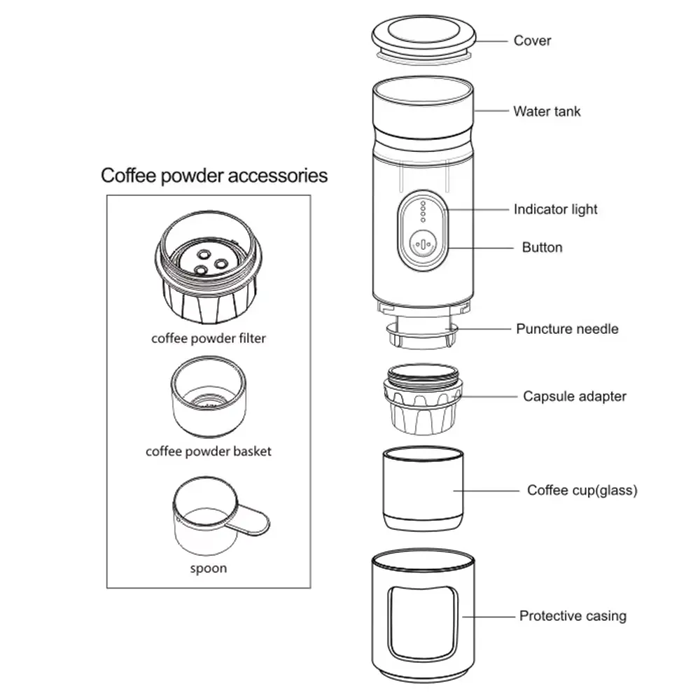 بدنه دستگاه از پلاستیک ABS مقاوم ساخته شده که ضمن حفظ وزن سبک، دوام بالایی را تضمین میکند. طراحی ضد نشت و عایق حرارتی نیز ایمنی کاربر را حفظ کرده و دمای بیرونی دستگاه را کنترل مینماید. نکته مهم دیگر، تمیزکاری آسان آن است؛ قطعات قابل جدا شدن، شستوشو با آب گرم را بسیار ساده میکنند، که برای بهداشت دستگاههای غذایی و استفاده مکرر در سفر یک فاکتور ضروری است. اقلام کاملی مانند کیف حمل، کابل شارژ و پیمانه قهوه نیز تجربه استفاده را کاملتر میکنند.