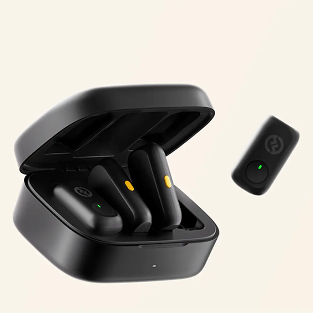 فرستنده LARK A1 تنها ۸ گرم وزن دارد و با ضخامت تنها ۰.۹ سانتیمتر، به طرز شگفتآوری نامرئی است و به راحتی توسط اتصال مغناطیسی (Magnetic Attachment) به هر لباسی متصل میشود بدون اینکه پارچه را سنگین یا مخدوش کند. این طراحی ارگونومیک و سبک، آن را برای استفاده طولانیمدت و سناریوهای حرکتی بسیار مناسب میسازد. همچنین، گیرنده (RX) با پورت جانبی به شما این امکان را میدهد که هنگام استفاده، گوشی خود را نیز شارژ کنید (قابلیت استفاده حین شارژ) و پخش صدا بدون نیاز به قطع اتصال (Seamless Playback) را تجربه کنید.