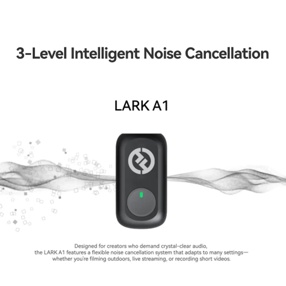 یکی از برترین مزایای رقابتی LARK A1، سیستم حذف نویز هوشمند سهسطحی (۳-Level Intelligent Noise Cancellation) است که به کاربران اجازه میدهد نویز محیطی را در سطوح ضعیف، متوسط یا قوی تنظیم کنند. این سیستم به صورت مؤثر صدای باد، ترافیک، همهمه محیط و حتی نویز کولر گازی را فیلتر میکند، در حالی که شفافیت و طبیعی بودن صدای گوینده را حفظ مینماید. علاوه بر این، برای دستیابی به صدای مطلوب، اپلیکیشن LarkSound امکان تنظیمات حرفهای اکولایزر (EQ) در حالتهای Balance، Low و Bright و همچنین افکت Reverb را فراهم میکند تا بتوانید بافت، عمق و وضوح صدای خود را کاملاً شخصیسازی کنید.