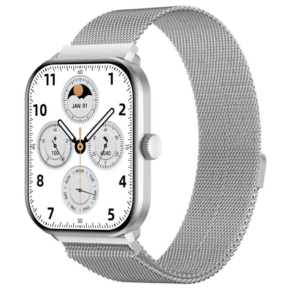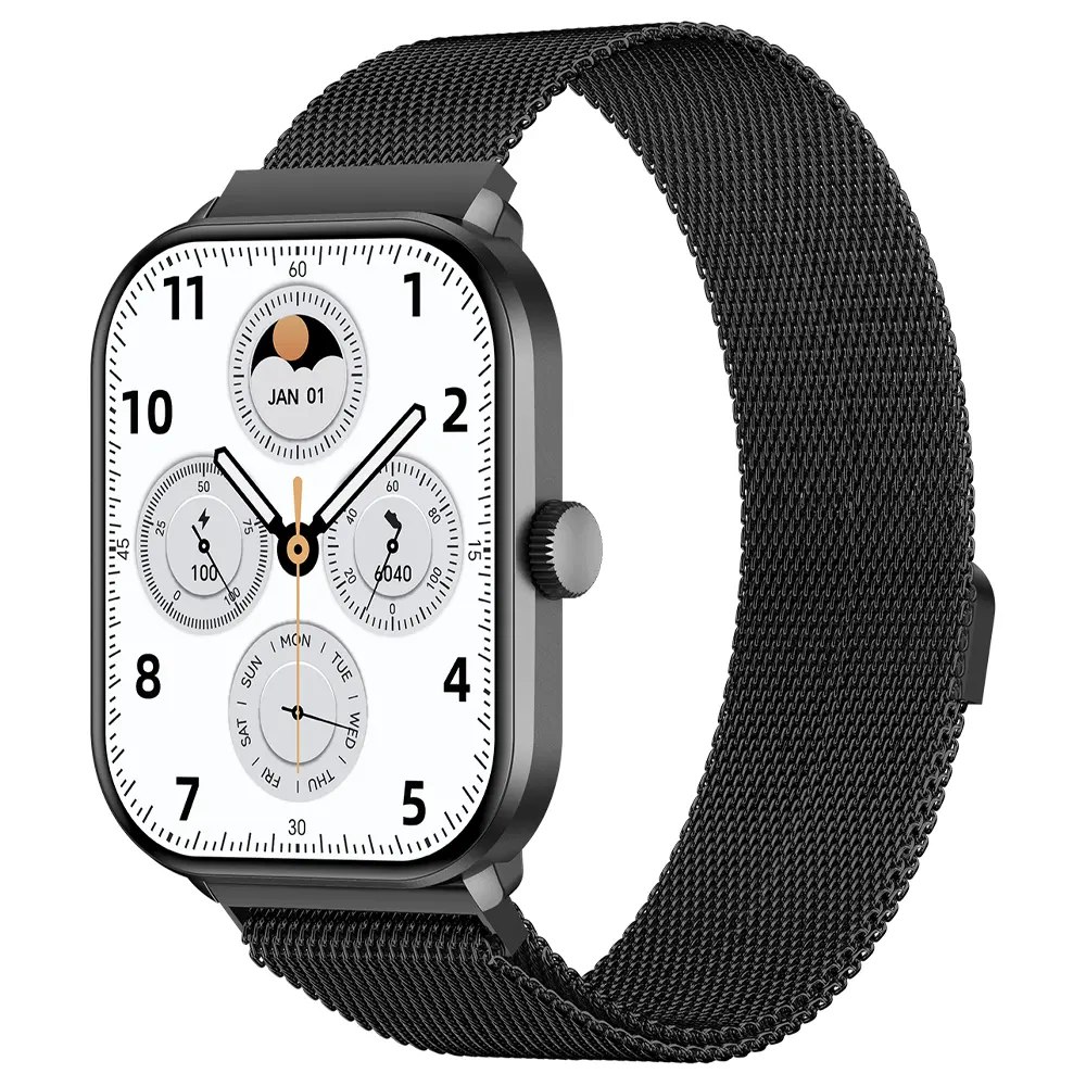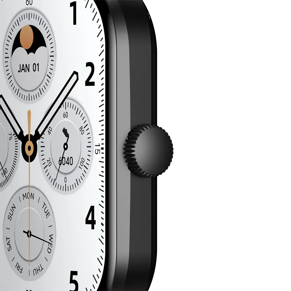 GC Plus در بخش طراحی نیز حرفهای زیادی برای گفتن دارد. فریم آن از جنس PC (پلی کربنات مقاوم) ساخته شده و دکمه چرخان (Rotating Crown Button) آن از استیل ضدزنگ است که مقاومت بالا در برابر خوردگی و ظاهر لوکسی به ساعت میبخشد. نمایشگر توسط شیشه با سختی بالا محافظت میشود. ساعت همراه با دو بند مجزا (بند مغناطیسی/استیل و بند سیلیکونی مایع ) عرضه میشود که امکان استفاده در محیطهای رسمی و ورزشی را به سادگی فراهم میکند. این ابعاد () و جزئیات، نشاندهنده تخصص در ساخت است.
