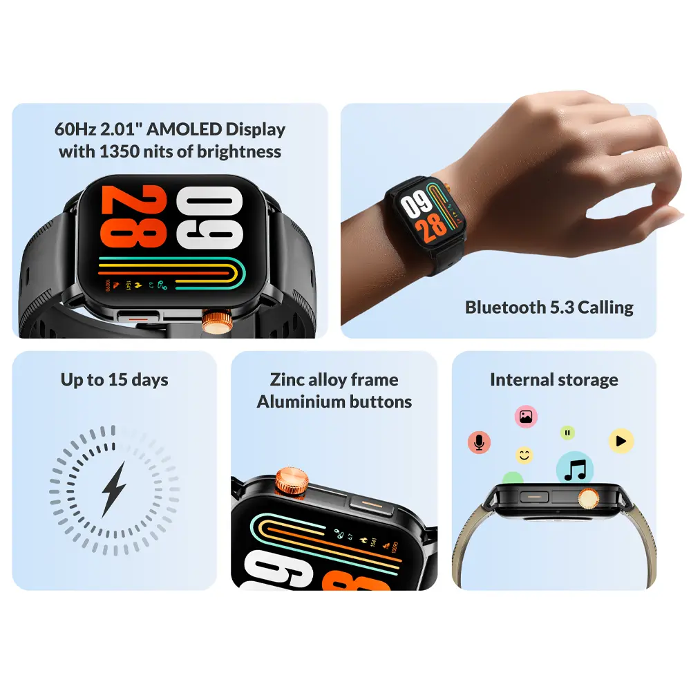 ساعت هوشمند گلوریمی مدل Glorimi Line فراتر از یک نمایشگر ساده روی مچ دست، با هدف ارائه عملکرد سریع و تعامل بصری سطح بالا طراحی شده است. این محصول با تجهیز به پردازنده دو هستهای (Dual-Core Processor) و موتور گرافیکی 2.5D Graphic Engine، تضمین میکند که پیمایش در رابط کاربری دینامیک (Premium Dynamic UI) کاملاً روان و بدون لگ انجام شود. مهمترین مزیت رقابتی و ویژگی کلیدی آن، نمایشگر 2.01 اینچی Ultra-Clear AMOLED با رزولوشن ۴۱۰*۵۰۲ پیکسل و نرخ نوسازی ۶۰ هرتز است که تجربهای خیرهکننده را فراهم میکند. با روشنایی فوقالعاده ۱۳۵۰ نیت (Sunlight Screen)، خوانایی در شدیدترین نور خورشید نیز تضمین شده است، که دغدغهی اصلی کاربران حرفهای در استفادهی خارج از محیط بسته را برطرف میکند.
