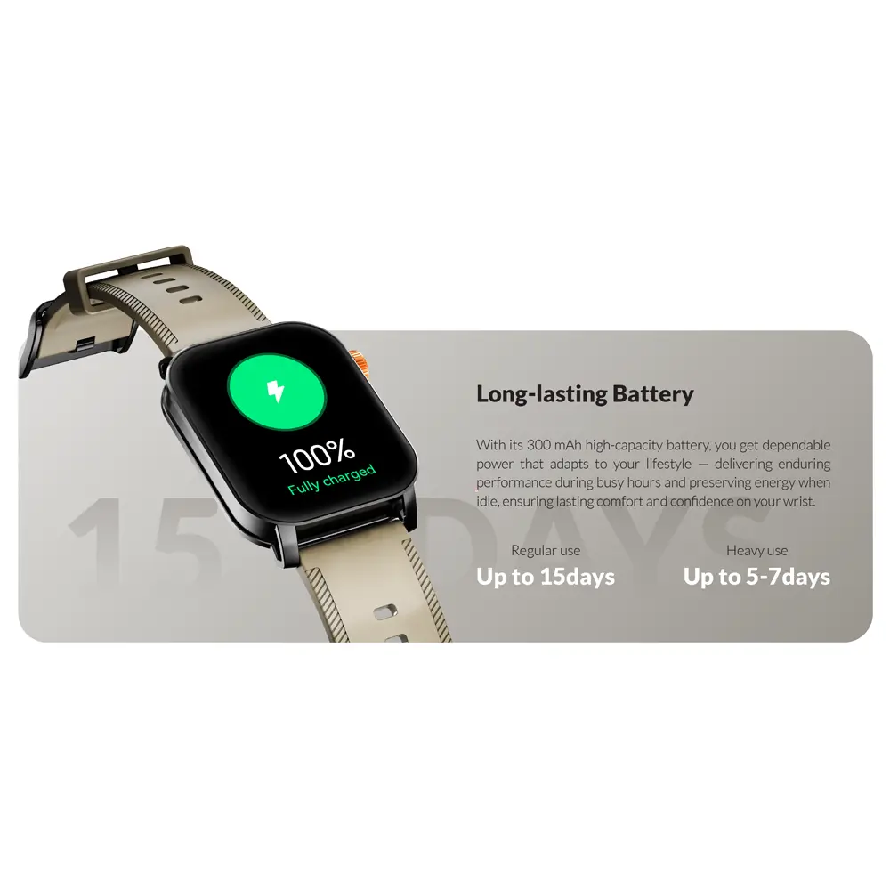 شارژدهی: باتری ۳۰۰mAh؛ ۳ تا ۵ روز استفاده سنگین، تا ۲۰ روز در حالت صرفهجویی.