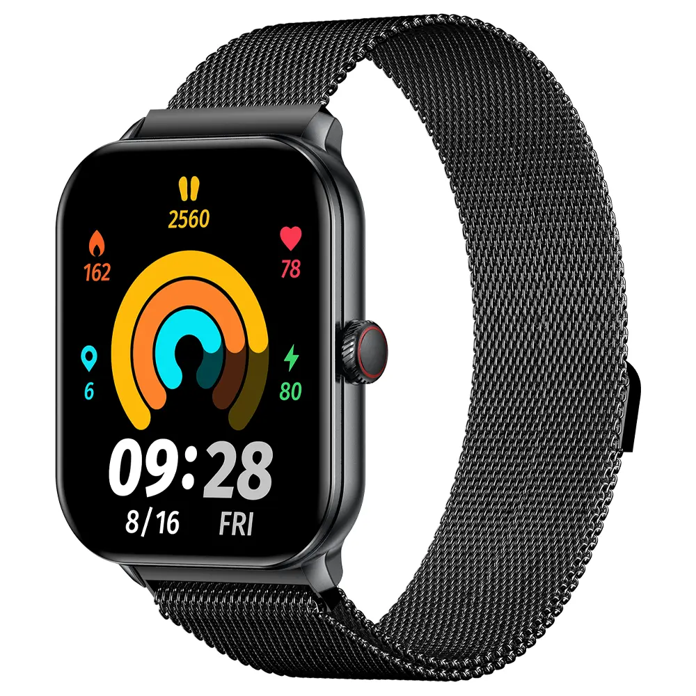 تمرکز بر کیفیت ساخت در GC Slim کاملاً مشهود است. قاب اصلی ساعت ترکیبی از مواد PC و Composite است که در کنار دکمهی چرخان (Rotating Crown Button) ساخته شده از فولاد ضدزنگ 304L، دوام و حس پریمیوم را القا میکند. یکی از مزیتهای رقابتی مهم این محصول، پکیج کامل بندهای دوتایی آن است: شامل یک بند مغناطیسی (یا استیل مغناطیسی) شیک برای استفادهی رسمی و یک بند سیلیکونی مایع برای فعالیتهای ورزشی. این قابلیت، ساعت را برای هر دو موقعیت رسمی و ورزشی کاملاً مناسب میسازد و انعطافپذیری بالایی به کاربر میدهد. شیشهی صفحه نیز از نوع 2D High Hardness Glass بوده و مقاوم در برابر ضربه و خط و خش است.