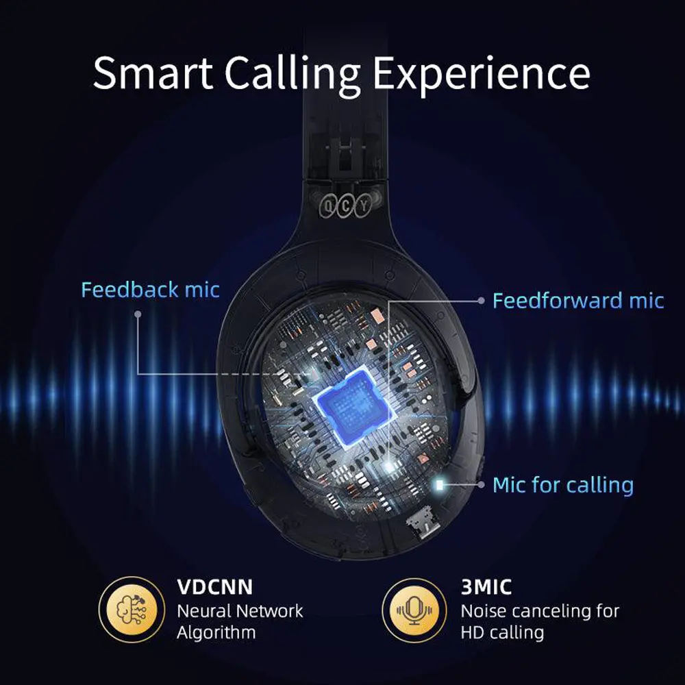 برای مکالمات با کیفیت بالا، QCY H3 به طور کلی مجهز به شش میکروفون داخلی (۳ میکروفون در هر گوشی) است. این میکروفونها، همراه با فناوری ENC (Environment Noise Cancellation)، صدای کاربر را به وضوح بالا منتقل کرده و نویز محیطی را حذف میکنند، که به طور ضمنی زمان مکالمه بالا (۴۵ ساعت با ANC روشن) را تضمین میکند. اتصال پایدار با بلوتوث ۵.۴ و پروفایلهای پشتیبانی شده ()، یک تجربه ارتباطی مطمئن را فراهم میسازد. همچنین، قابلیت چندنقطهای (Multi-Point) امکان اتصال همزمان به دو دستگاه را فراهم میکند.