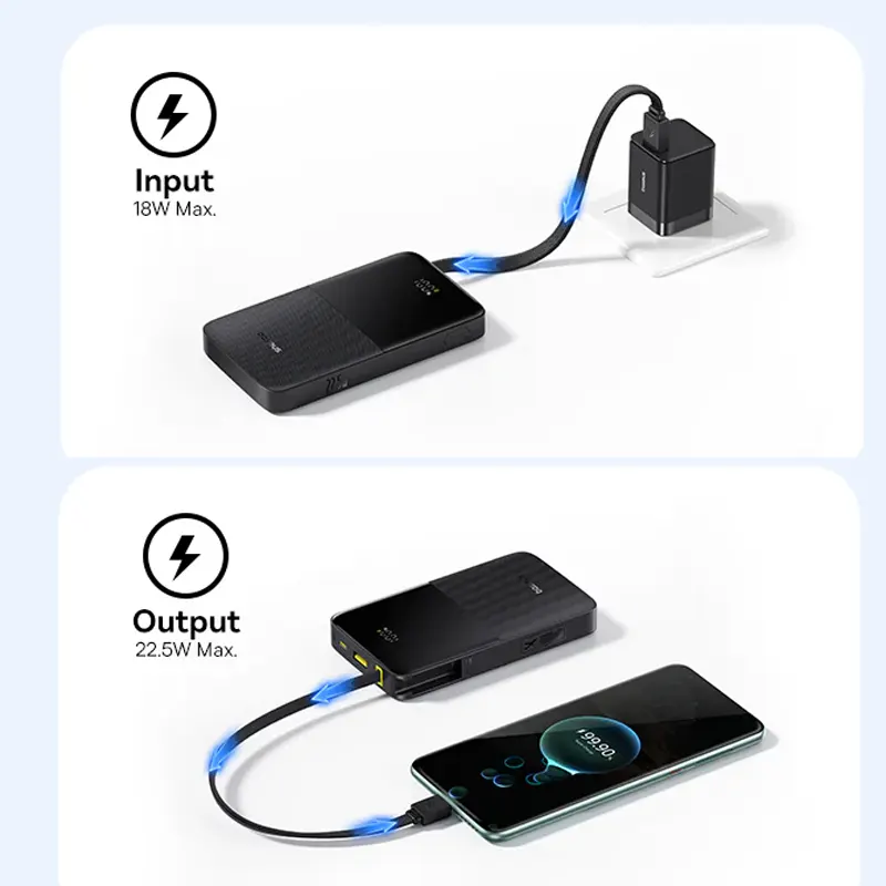 این پاوربانک با پشتیبانی از فناوریهای PD و QC، امکان شارژ سریع گوشیهای هوشمند، تبلتها و حتی لپتاپهای سبک را فراهم میکند. توان 22.5 وات آن به شما اجازه میدهد دستگاههای پرمصرف را هم بدون نگرانی و با سرعت بالا شارژ کنید. ظرفیت 10000 میلیآمپرساعت پاوربانک بیسوس EnerFill FC51 به شما امکان میدهد تا برای مدت طولانی بدون نگرانی از خالی شدن شارژ دستگاههای خود، به کارهای روزمرهتان بپردازید. این حجم از انرژی میتواند یک گوشی هوشمند پیشرفته مانند iPhone 15 Pro را تا 1.8 بار، یا یک لپتاپ با ظرفیت متوسط مانند iPad Air را حدود 0.8 بار شارژ کند.