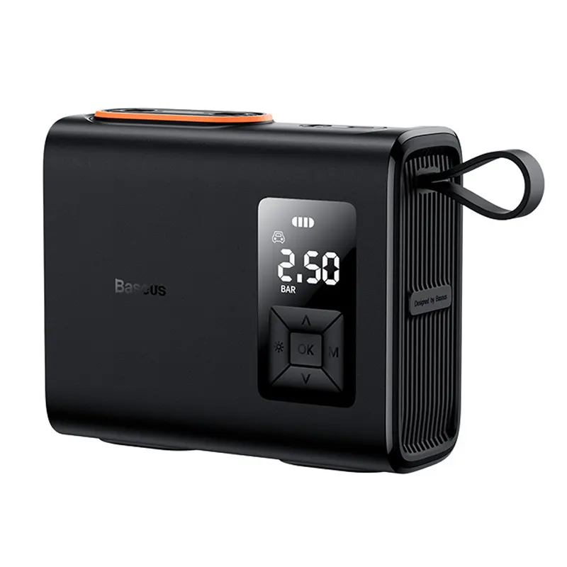 یک صفحه نمایشگر دیجیتال LCD روی بدنه برای نمایش اطلاعاتی همچون سطح باتری و فشار تایر، باد کردن و وضعیت شارژ طراحی شده است. روی بدنه پنج کلید را مشاهده میکنید. عملکرد از پیش تعیین شده این امکان را به شما می دهد که بعد از انتخاب فشار مورد نظر به طور خودکار دستگاه بعد از رسیدن به ان فشار عملکرد را قطع کند. شلنگ های ورود و خروج هوا در قسمت بالایی دستگاه تعبیه شده است. در قسمت لبه ی دستگاه دریچه ای طراحی شده است که عبور هوا را در زمانی که دستگاه در حال کار کردن است ممکن می کند و عملکرد دستگاه را بالا می برد.