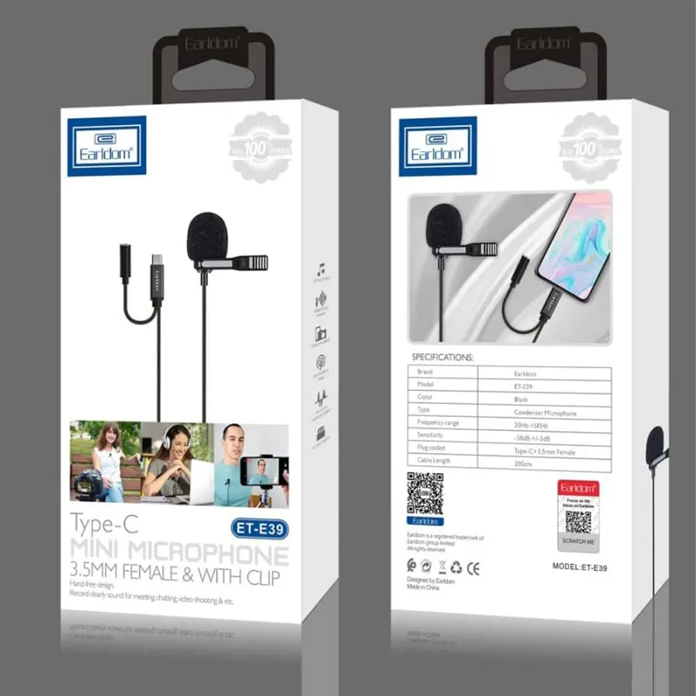 Earldom E39 Lavalier Microphone TYPE-C & 3.5MM Female