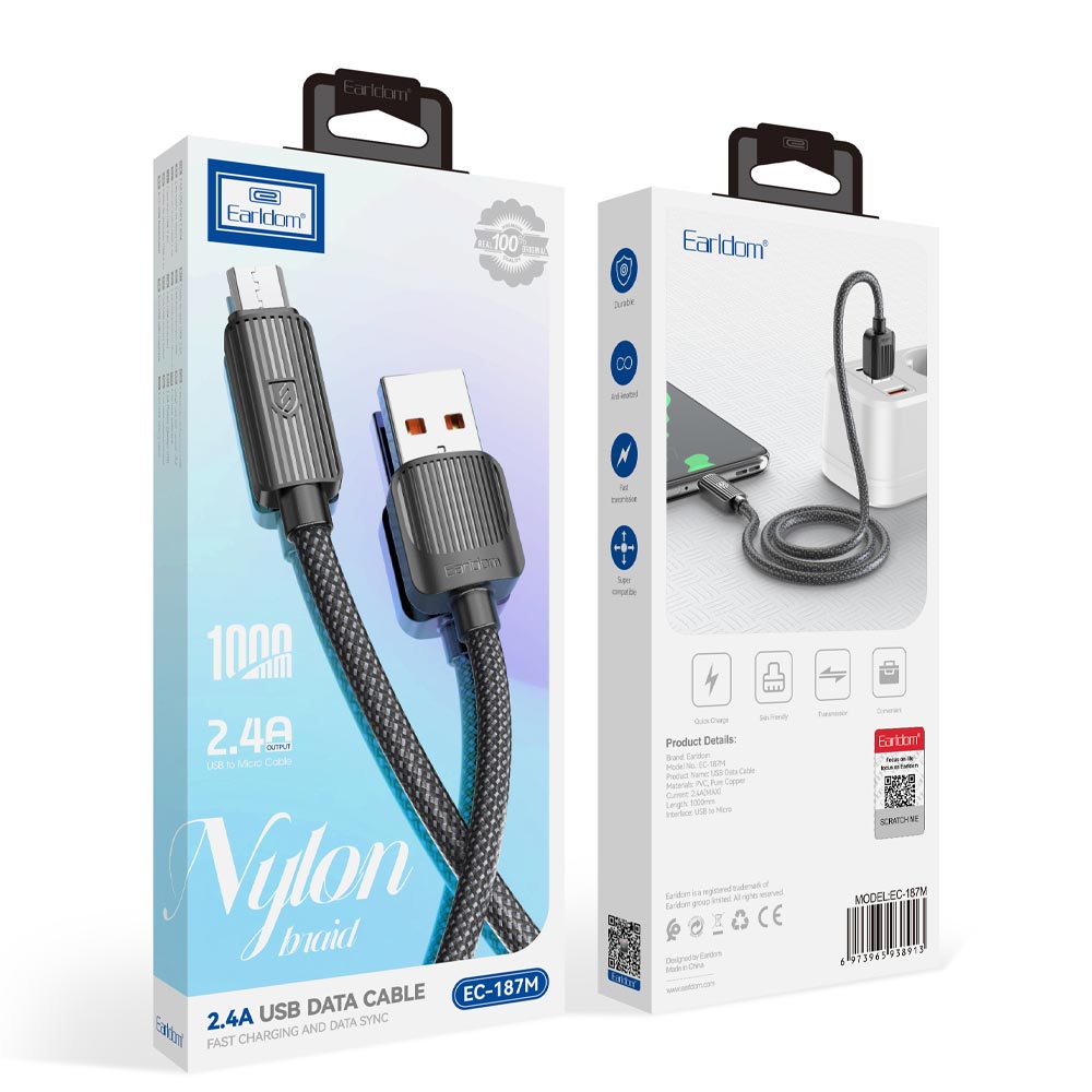 کابل شارژ USB به micro USB ارلدام مدل EC-187M طول 1 متر توان 2.4 آمپر