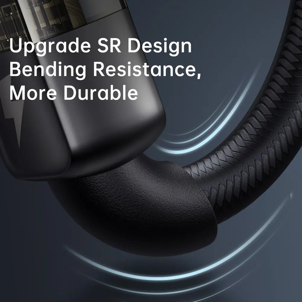 استفاده از هسته یکپارچه مسی به همراه کابل های بسیار با کیفیت در کنار استفاده از آلیاژ روی باعث گردیده علاوه بر انتقال الکتریکی بسیار بالا اتلاف حرارتی نیز به خوبی صورت گیرد و از داغ شدن کابل به صورت چشمگیری جلوگیری به عمل آید. طراحی مقاومت پیچشی پایه کانکتور به صورت هوشمندانه انجام شده است که باعث گردیده تا از پاره شدن کابل در محل اتصال به کانکتور جلوگیری به عمل آمده و طول عمر کابل شما به میزان قابل توجهی افزایش یابد. طراحی فوقالعاده منحصربهفردی دارد و به دلیل شفافیت، اجزای درونی آن به خوبی قابل مشاهده است. دو چراغ نشانگر آبی و نارنجی هم در ساختارش مشاهده میکنید که با توجه به حالت شارژ تغییر رنگ میدهند. طول کابل تایپ سی به لایتنینگ 120 سانتی متر است و برای استفاده در زمانی که از پریز برق فاصله دارید یا در صندلی عقب خودرو هستید مناسب است.