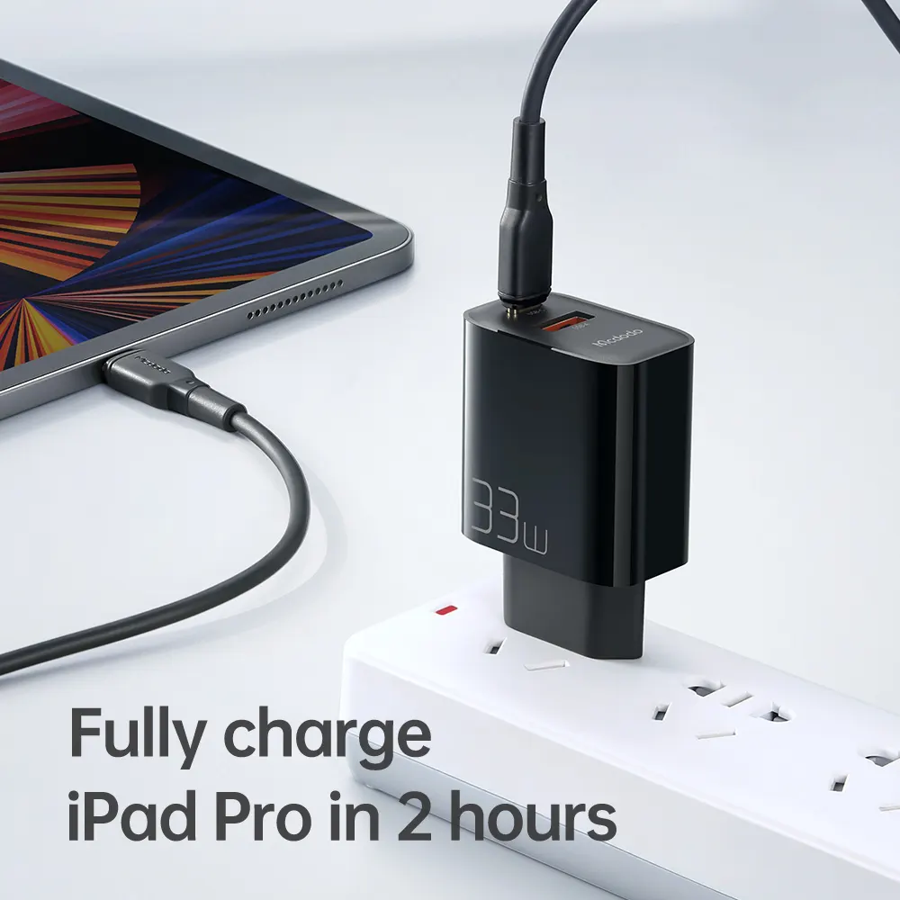 شارژر دیواری مکدودو CH-0921 دارای دو پورت خروجی Type-C+USB-A با قابلیت فست شارژ میباشد که با توان 33 واتی خود میتواند دستگاه شما را در کوتاه ترین زمان ممکن شارژ کند، این محصول از شارژ همزمان دو دستگاه نیز پشتیبانی میکند. شارژر دیواری فست شارژ مک دودو Mcdodo CH-0921 PD 33W به عنوان یک شارژر استاندارد با توان 33 وات دستگاه شما را به طور همزمان در کوتاه ترین زمان ممکن شارژ میکند، در صورتی که دستگاه شما نیز از شارژ سریع پشتیبانی کند. آداپتور فست شارژ مک دودو باتری آیفون 12 را در مدت 15 دقیقه 30 درصد، باتری آیپد پرو را در مدت 1 ساعت 65 درصد، باتری مک بوک ایر در 150 دقیقه و ردمی 40K در 52 دقیقه به 100 درصد شارژ میرساند.