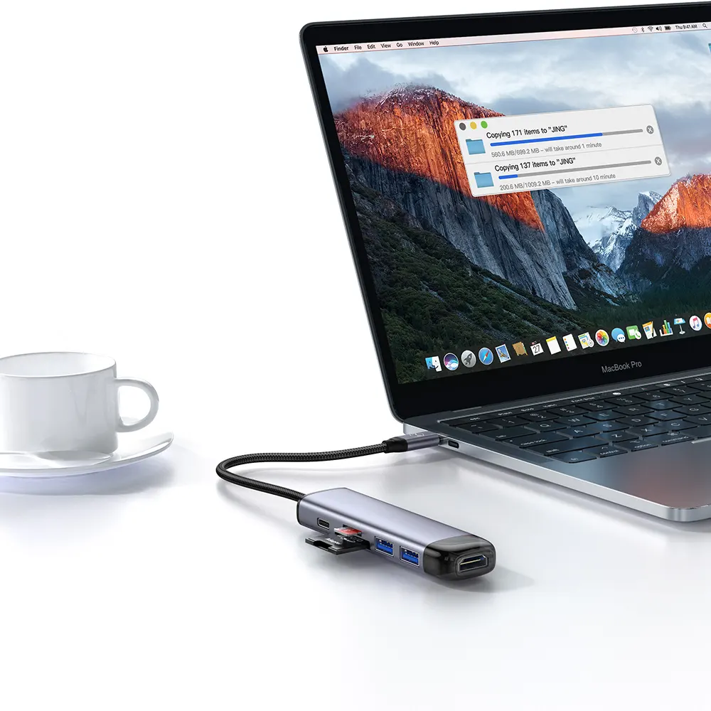 همانطور که از اسمش پیداست این هاب مک دودو مجموعا دارای 6 پورت متفاوت است. از این 6 پورت روی هاب، 2 عدد پورت USB3.0، یک پورت تایپ سی، یک HDMI، یک کارت خوان SD و یک کارت خوان MicroSD داریم که در ادامه مشخصات هر کدام را توضیح میدهیم.