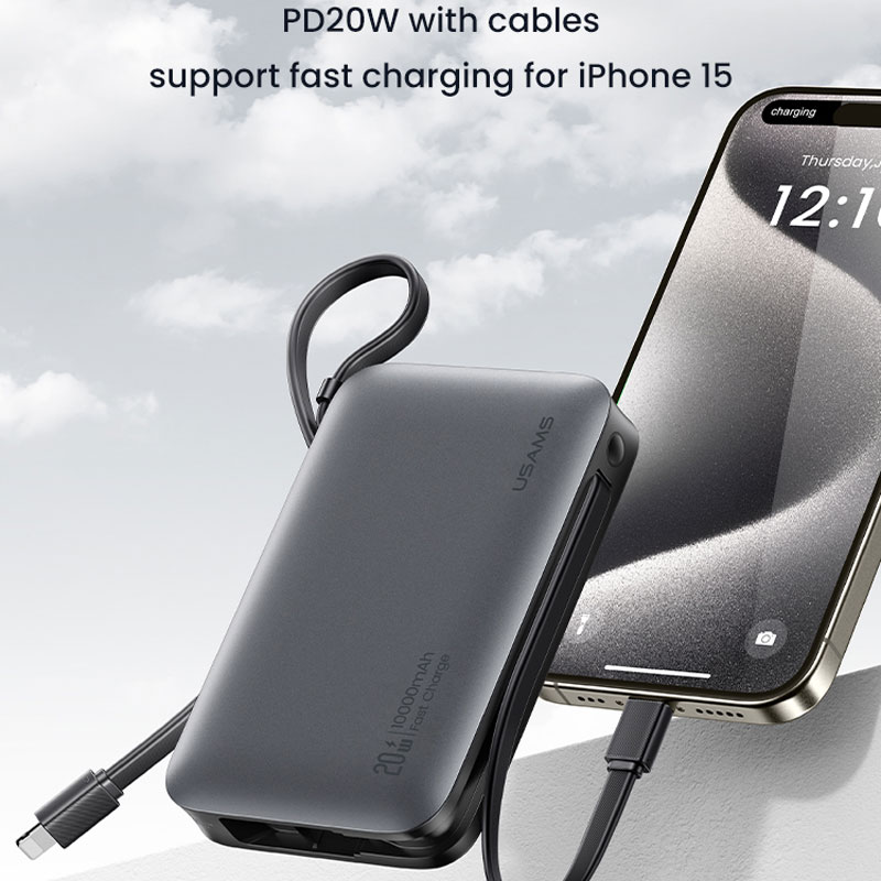 USAMS CD228 20W Power Bank With Type-C+Lightning Cables 10000mAh