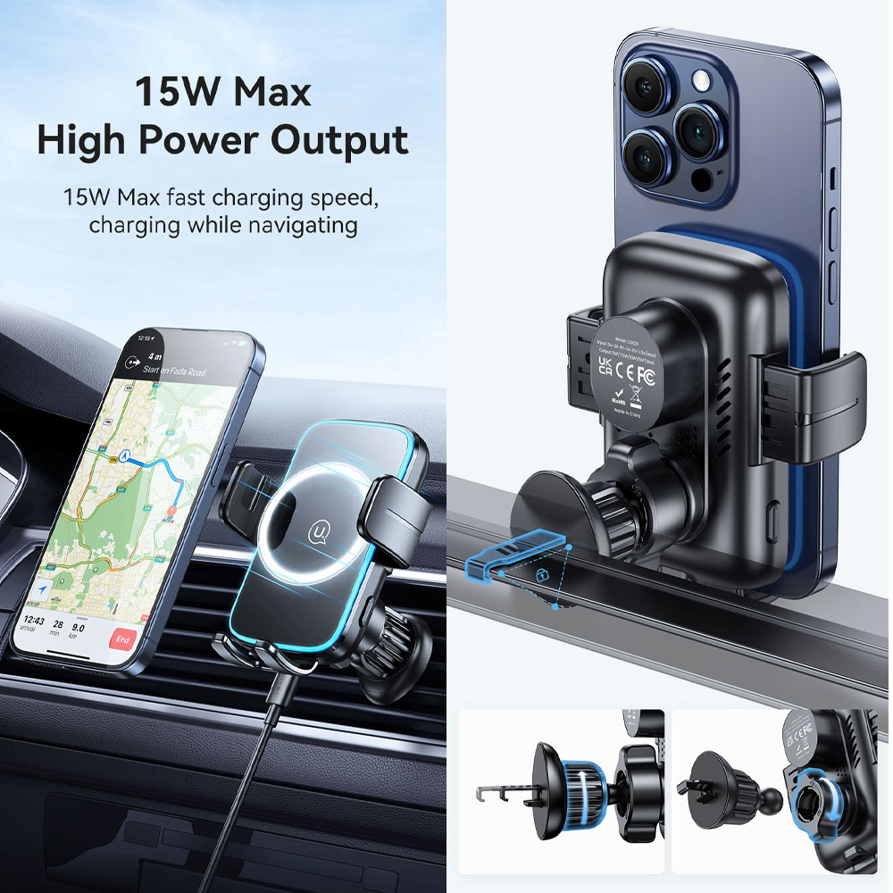 USAMS CD230 Wireless Charging Car Phone Holder 15W