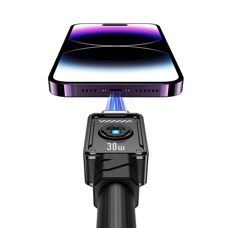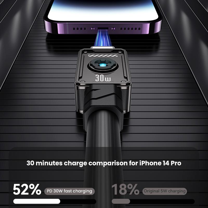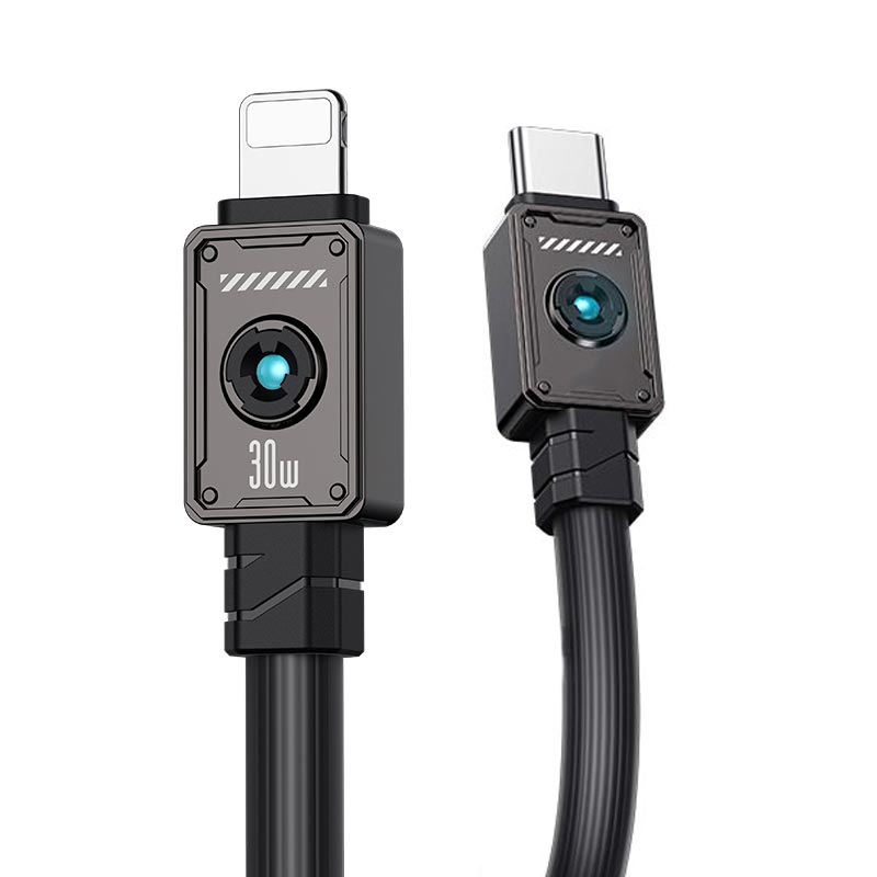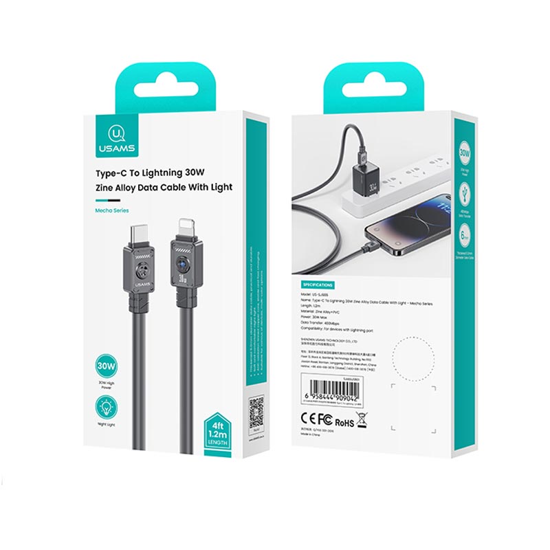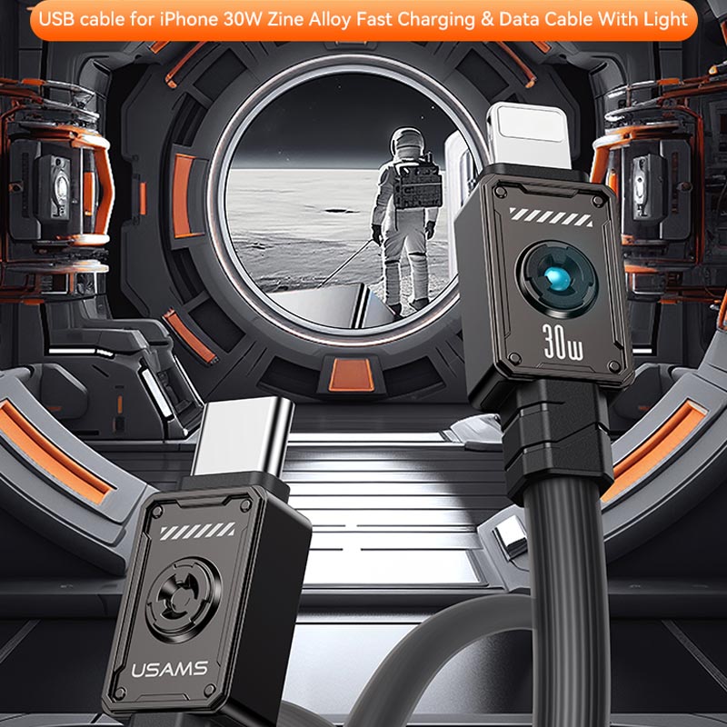 USAMS SJ685 Type-C To Lightning 30W Zine Alloy Cable with Light 1.2m