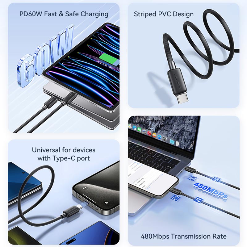 USAMS SJ696 USB-C To USB-C Cable 60W 2m