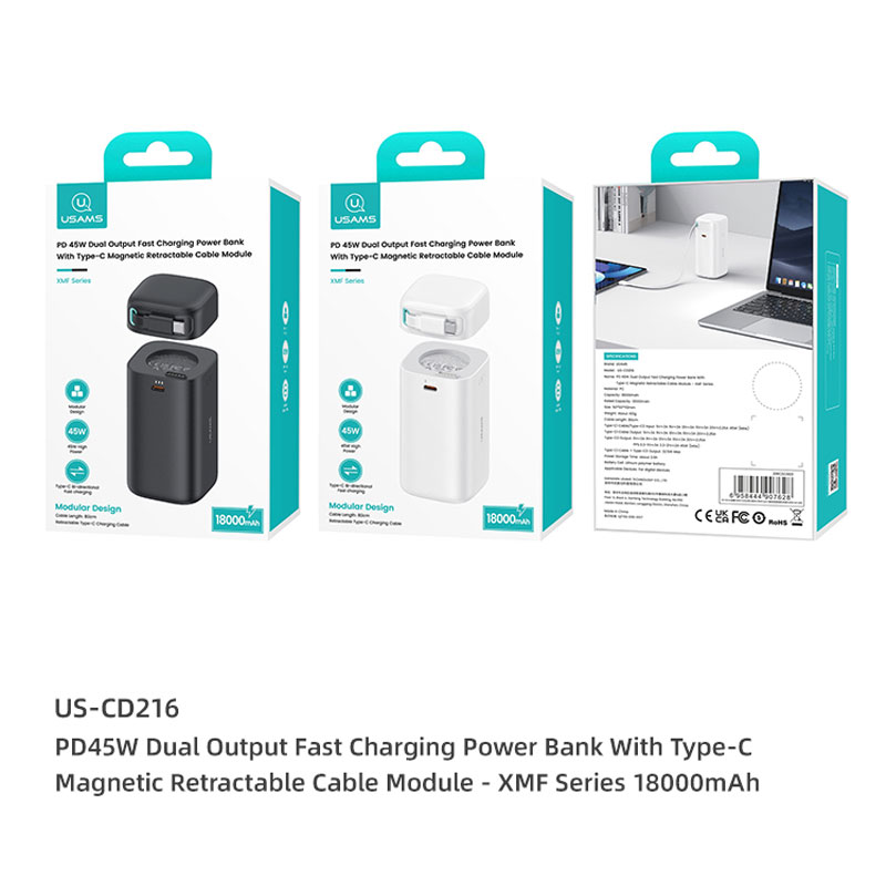USAMS US-CD216 PD 45W Power Bank With Type-C Cable