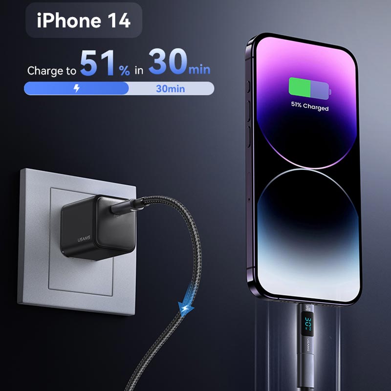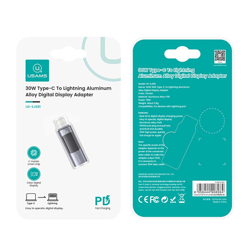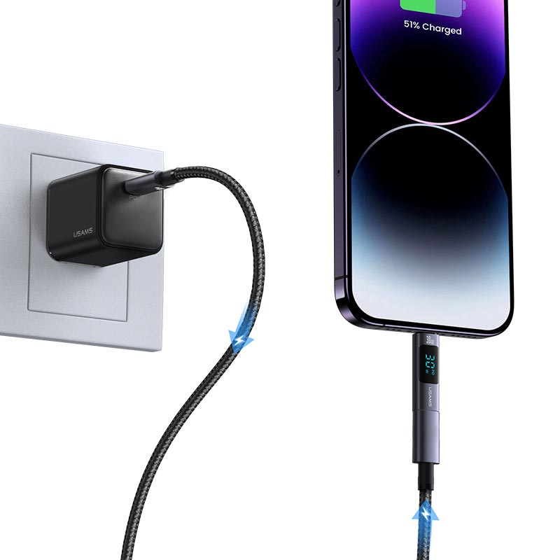 USAMS US-SJ681 AU18 30W Type-C To Lightning Aluminum Alloy Digital Display Adapter