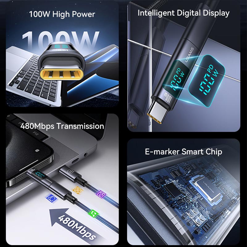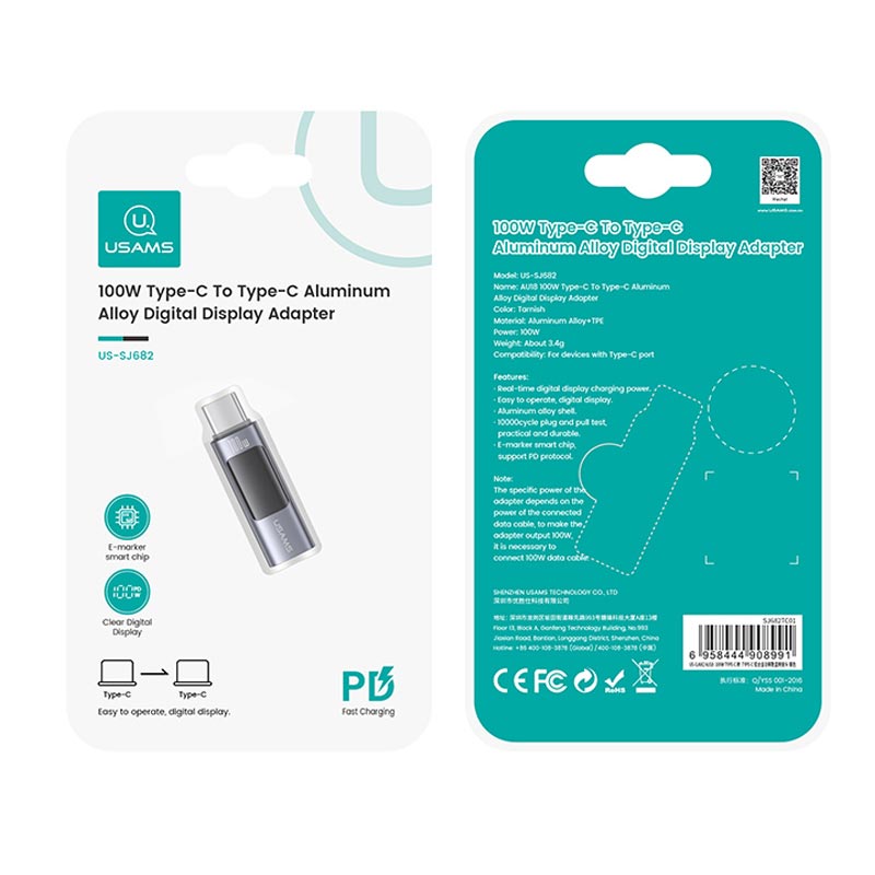 USAMS US-SJ682 AU18 100W Type-C To Type-C Aluminum Alloy Digital Display Adapter