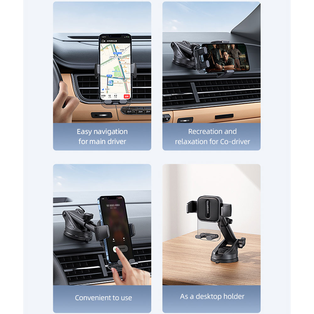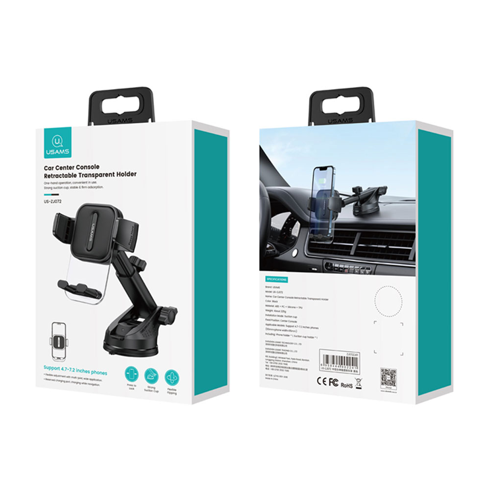 استند نگهدارنده گوشی US-ZJ072 به یک پایه با قدرت مکش بسیار بالا مجهز شده است که از طریق ایجاد خلا به سطوح می چسبد. بنابراین کاربران می توانند این استند را روی میز، در قسمت جلویی خودرو یا روی شیشه خودرو مورد استفاده قرار دهند. یوسمز برای راحتی کاربران گیره پایینی استند خود را به گونهای طراحی کرده است که کاربران می توانند به پورت های تعبیه شده در قسمت انتهایی گوشی هوشمند خود دسترسی داشته و به راحتی از درگاه شارژ گوشی استفاده کنند. بنابراین کاربران می توانند ضمن استفاده از استند USAMS US-ZJ072 گوشی هوشمند خود را به شارژر فندکی خودرو متصل کنند.