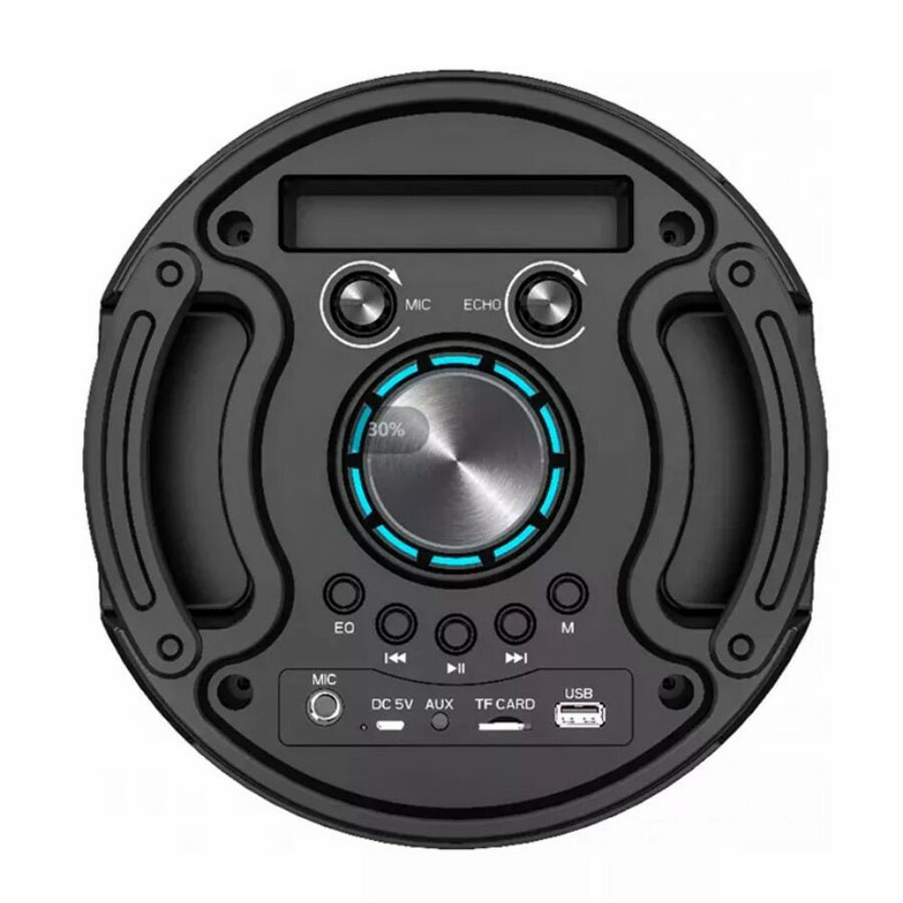 اسپیکر بلوتوثی قابل حمل مدل ZQS-6216 که بنام بیس حیرت انگیز معروف شده با وزنی معادل 3.8 کیلوگرم می باشد و با طراحی منحصر به فرد و قیمت مناسب مورد توجه بسیاری از کاربران قرار گرفته است. نوع اتصال در این اسپیکر بلوتوث قابل حمل زد کیو اس بی سیم (از طریق بلوتوث) و با سیم (از طریق رابط جک 3.5 میلی متری صدا) می باشد. ابعاد سابووفر در این اسپیکر بلوتوث 6.5x2 اینچ است و از حساسیت 50 دسی بل و پاسخ فرکانسی 45 هرتز الی 18 کیلوهرتز بهره می برد. نوع باتری تعبیه شده در اسپیکر ZQS-6216 لیتیومی با ظرفیت 4500 میلی آمپر ساعت است و به وسیله کابل میکرو یو اس بی نیز شارژ می شود و شما می توانید بیشتر از 3 ساعت به صورت مداوم پخش موسیقی داشته باشید. از دیگر ویژگی های این اسپیکر میتوان به: ولوم دیجی تغییرصدا، رقص نور تمام صفحه، ریموت کنترل، رادیو، میکروفون سیمی اشاره نمود. شیار کارت حافظه در اسپیکر بلوتوث قابل حمل زد کیو اس ZQS-6216 از نوع Micro SD بوده که از ظرفیت 32 گیگابایتی پشتیبانی می کند تا بتوانید به راحتی فلش مموری و کارت حافظه های سازگار به اسپیکر متصل کنید و از پخش موسیقی دلخواه خود لذت ببرید.